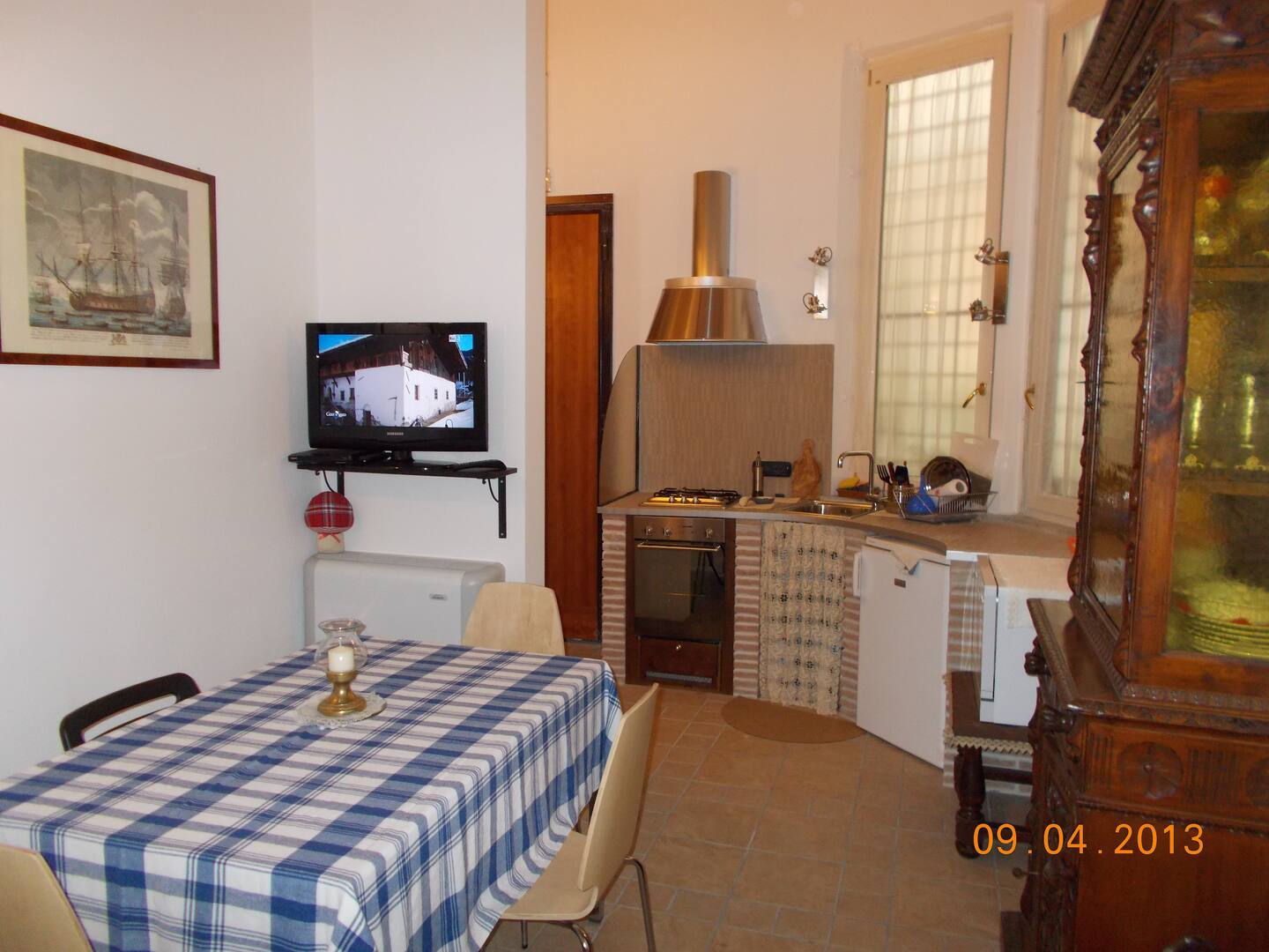Il salotto, accogliente e luminoso ☀️, con un divano-letto ad una piazza e mezzo 🛏️, un tavolo da pranzo che può ospitare fino a 4 persone 🍽️ e una TV 📺.