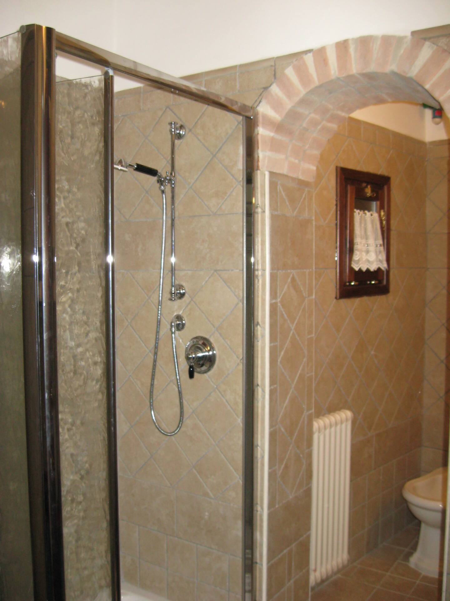 Il bagno è completo di doccia 🚿, lavatrice 🧺, asciugacapelli 💨 e prodotti di cortesia 🧼.